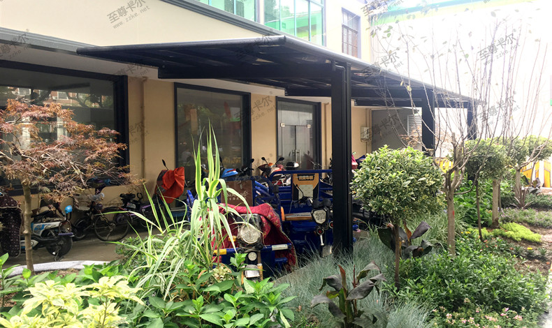 汽車(chē)坡道雨棚的壽命一般是多少年?至尊卡爾雨棚!汽車(chē)坡道雨棚一般面積是比較大的,因此,所需要的造價(jià)比家用的小雨棚要高很多,在安裝前,就需要考慮好其材質(zhì)、壽命等等各