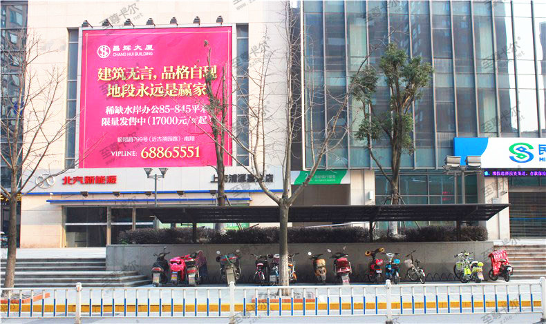 昌輝大廈位于嘉定南翔鎮,東臨槎溪路、西臨古漪園路、北臨銀翔路、南臨翔二河,是集高層甲級寫字樓,雙拼聯排辦公樓及配套商業為一體的高層次商業區,昌輝大廈在用戶體驗做的非常好,包括大廈門口的花壇旁都特意給我們的用戶安裝了我們至尊卡爾正宗的鋁合金自行車車棚。